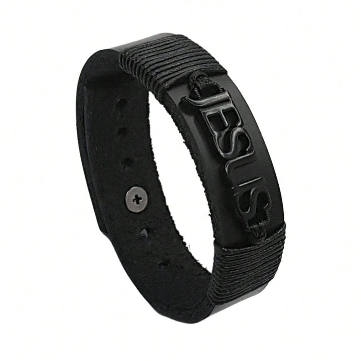 Pulseira Masculina em Couro Nome Jesus Ajustável