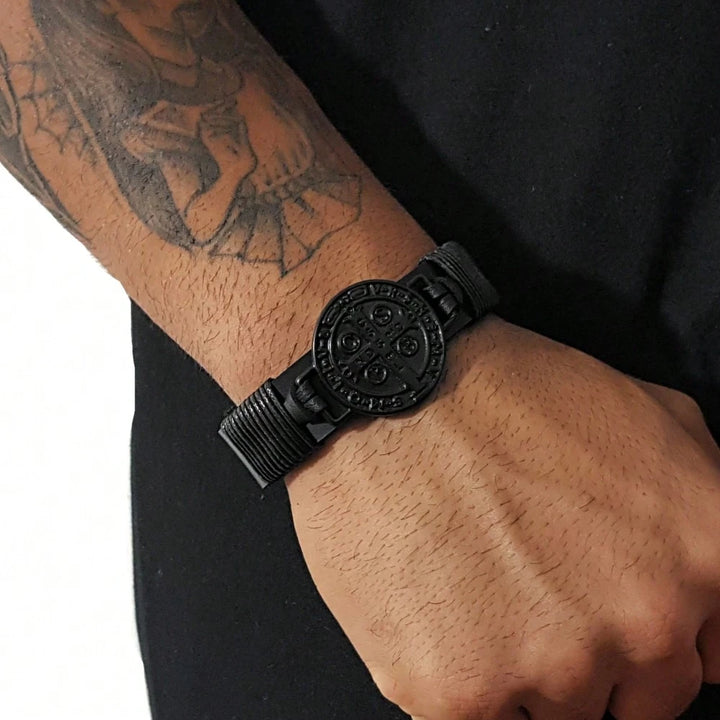 A Pulseira Masculina em São Bento Couro Legítimo - Artesanal é um símbolo poderoso de fé, proteção e força espiritual . Inspirada na tradicional Medalha de São Bento , esta peça representa a vitória do bem sobre o mal e a presença constante da proteção divina no dia a dia.